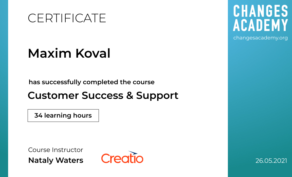 Мне, как человеку недавно возглавившему отделы Customer Success и Support, на этом курсе было очень получить информацию и пообщаться с теми, кто уже имеет опыт построения и руководства подобными департаментами, а также подтвердить или опровергнуть обоснованность внедрения определённых бизнес-решений. И в результате этого курса мой to do list пополнился решениями, которые я начал внедрять в своей компании сразу после прохождения обучения.